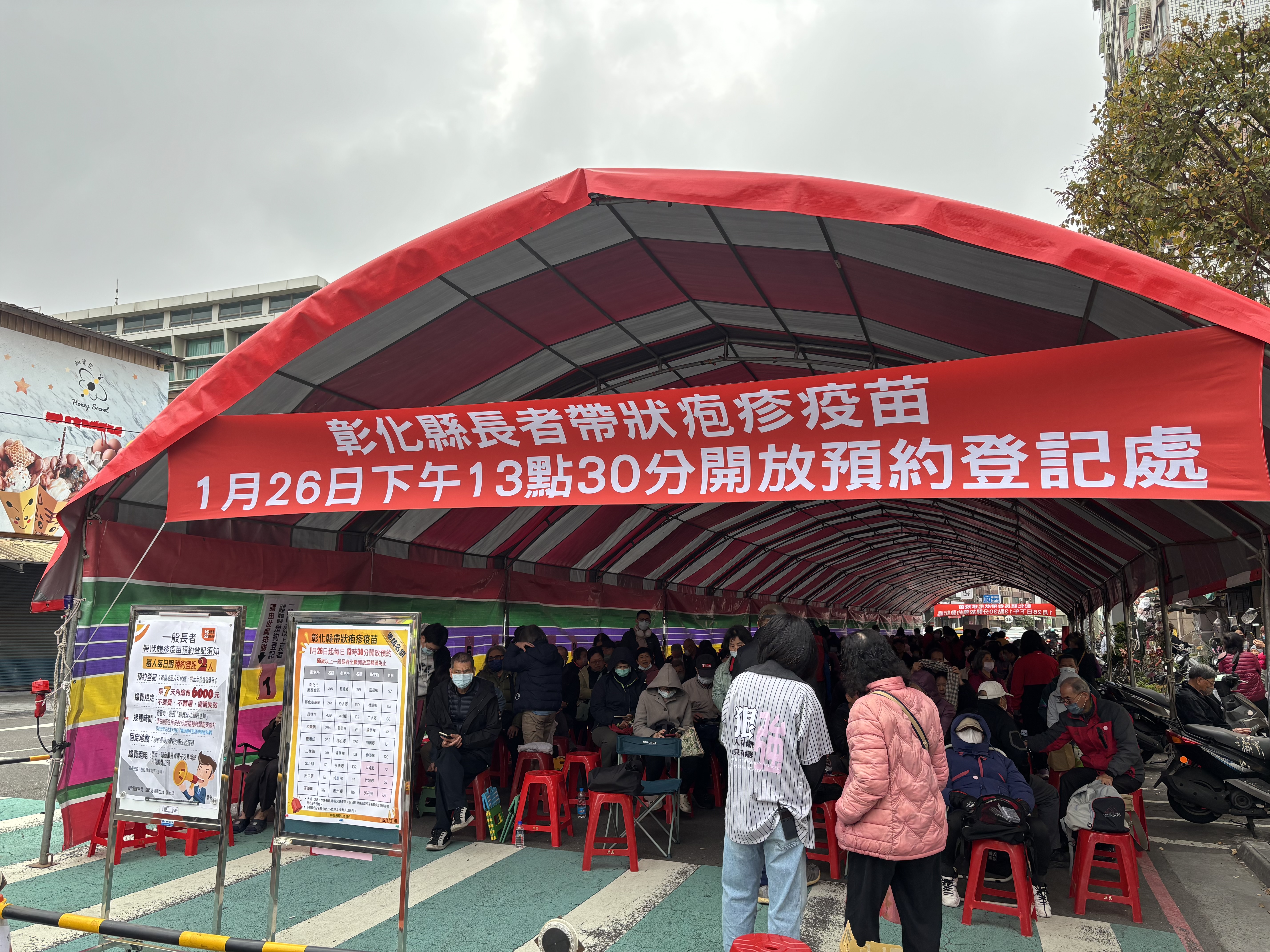 彰化縣推動長者帶狀疱疹(皮蛇)疫苗接種計畫,原本為避免長者在寒夜排隊,將登記時間調整為下午1點半開始,未料仍擋不住搶打人潮。記者林敬家/攝影